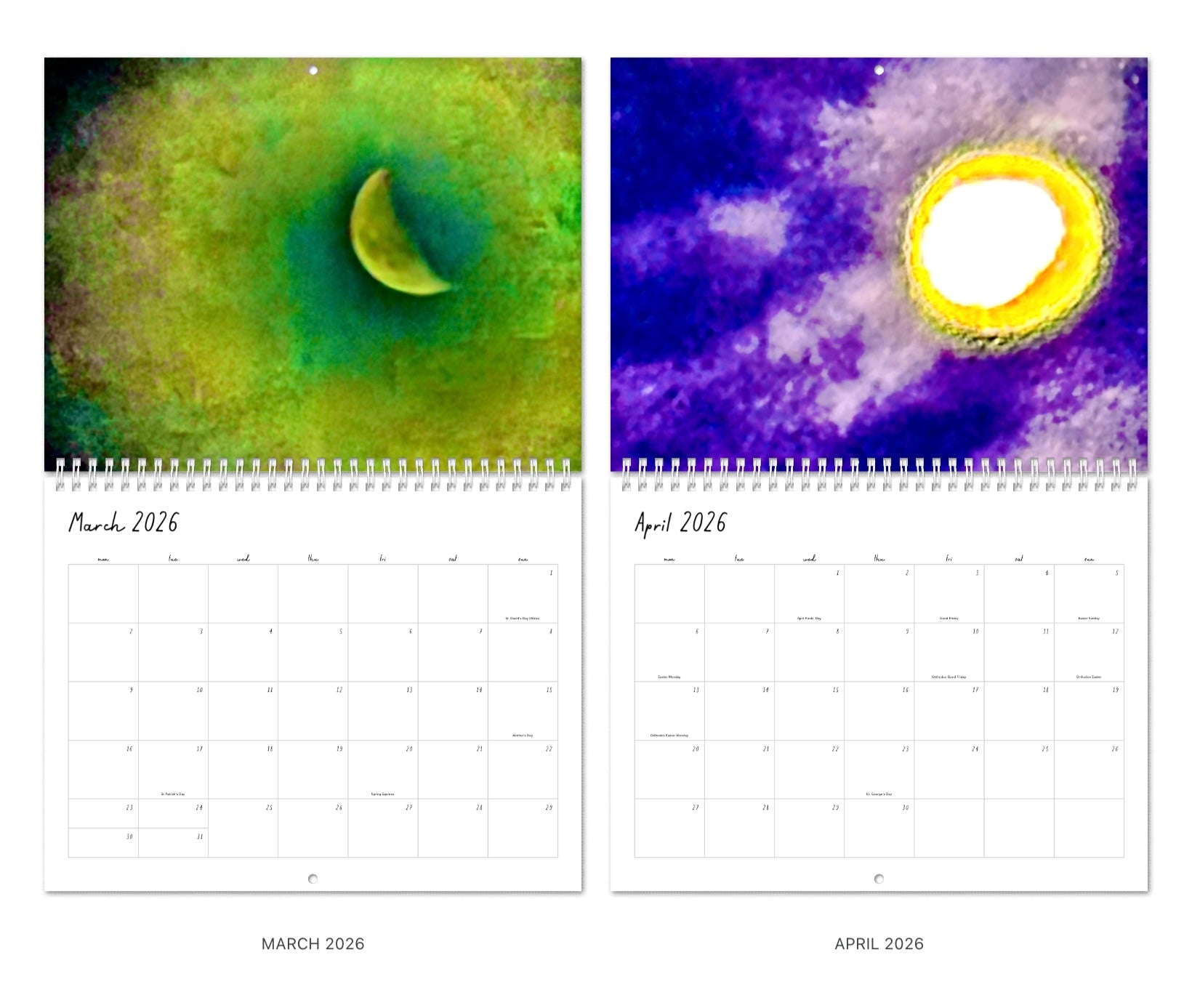 Frame it, hang it, write your dreams on it. Forget the month, just keep its beauty alive. All photos are real, taken on a real moment in time, edited Elena & Atlas™ own style. Comes in two sizes (14”x11” and 11”x8”), in premium glossy paper, custom made to order and shipped directly from UK-printing trusted partner. Spiral board and a small hole for your easy hanging.A year of skies, unfiltered, and small truths we dare to write down.