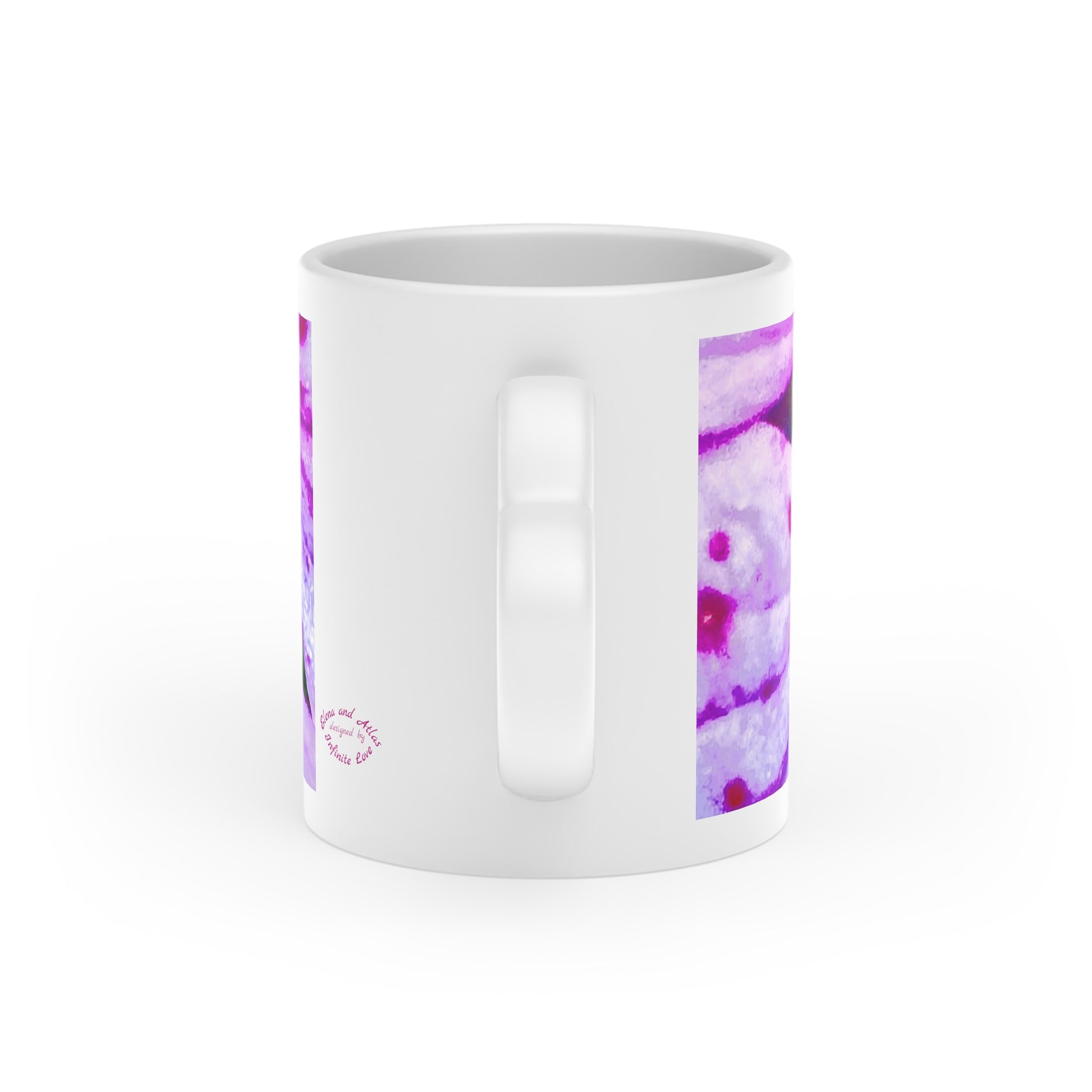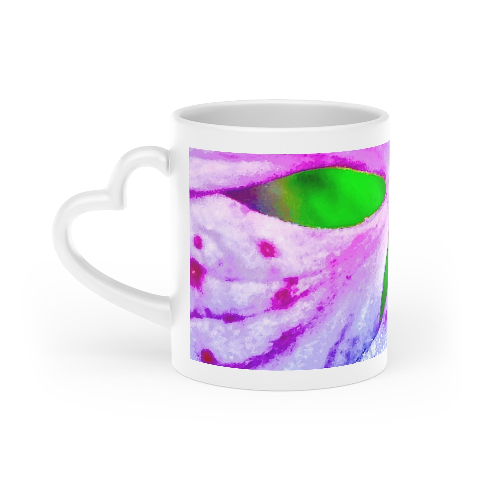 You're not just drinking from a 11 oz or 330 ml mug. It's a full color flower print, a heart-shaped handle for lovers with gentle souls but strong dreams. It's memory. It's art with pulse.