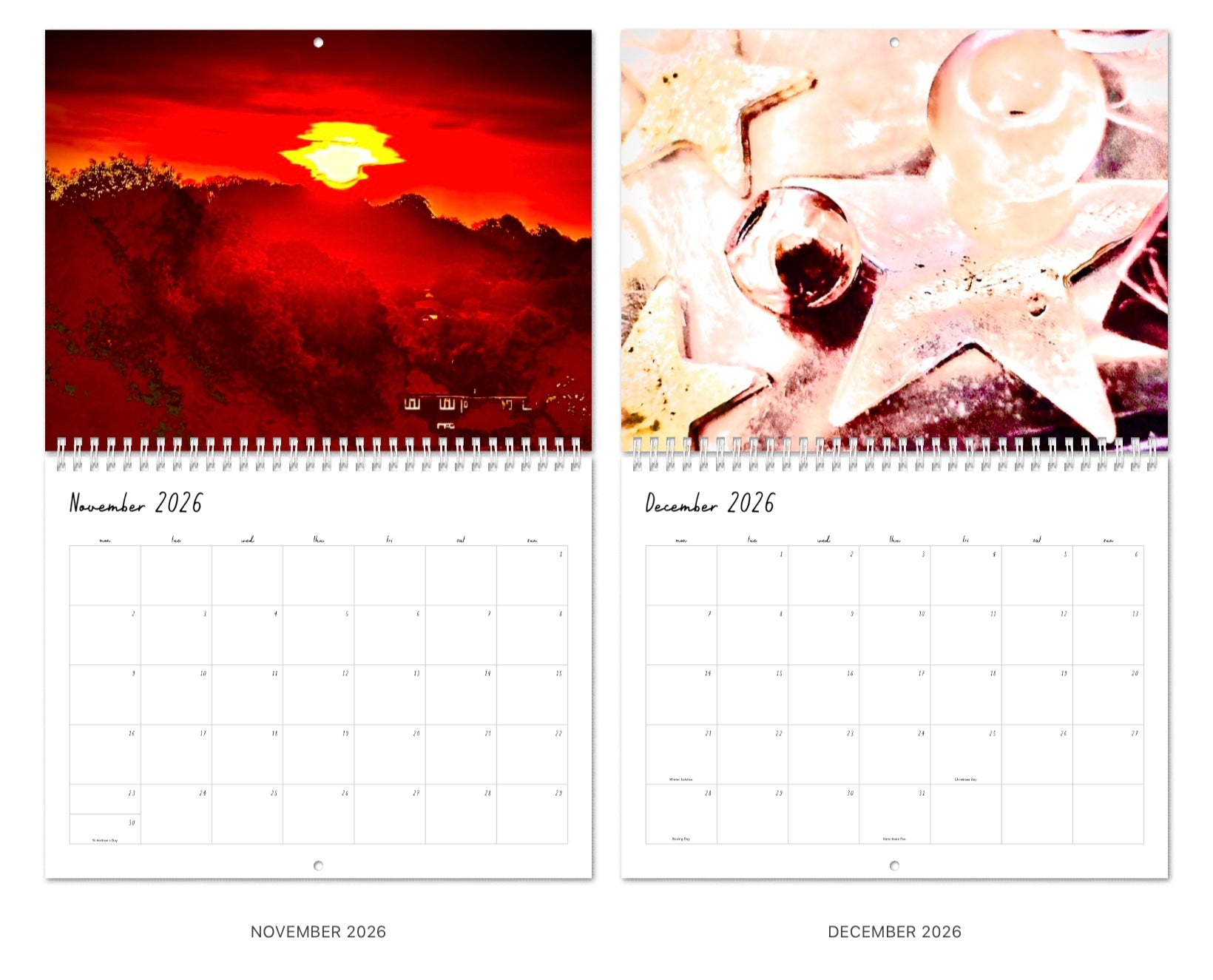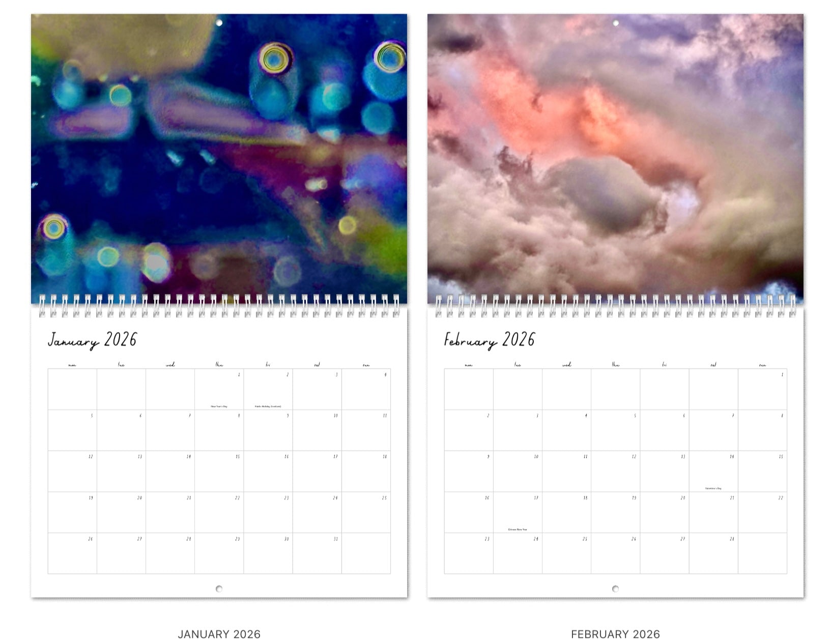 Frame it, hang it, write your dreams on it. Forget the month, just keep its beauty alive. All photos are real, taken on a real moment in time, edited Elena & Atlas™ own style. Comes in two sizes (14”x11” and 11”x8”), in premium glossy paper, custom made to order and shipped directly from UK-printing trusted partner. Spiral board and a small hole for your easy hanging.A year of skies, unfiltered, and small truths we dare to write down.